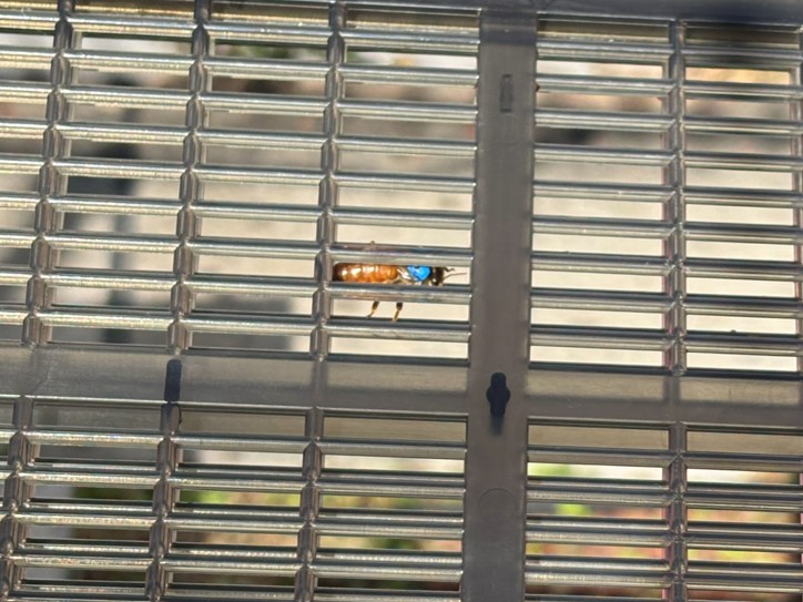 まず、越冬に備えた重要なミツバチヘギイタダニ対策の第3弾を実施します(参考:第1弾、第2弾)。女王蜂の隔離を行い、ダニ対策用の薬剤アピバール、チモバールを設置しました。また、前回同様に、ダニの落下状況を確認するため、プラスチック下敷きを巣門に設置しました。薬剤の投与期間は4~5週間を目安にし、除去はミツバチが活発に活動している暖かい日に行う予定です。
