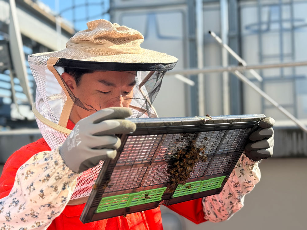 2025年11月下旬よりダニ対策の一環で隔離していた女王蜂を、ついに解放する時を迎えました。12月中旬の内検を最後に、約1ヶ月もの間、巣箱の蓋を開けることなく静かに見守ってきたため、「無事に越冬できているだろうか」「群の勢いは保たれているか」と、胸がざわつく中での作業開始となりました。1月下旬に襲った強い寒波の影響で、東京でも厳しい冷え込みが続いています。この時期の開箱によるミツバチの体温低下は命取りになるため、最短時間で作業を終えるよう、事前に作業手順をメンバー間で共有して臨みました。