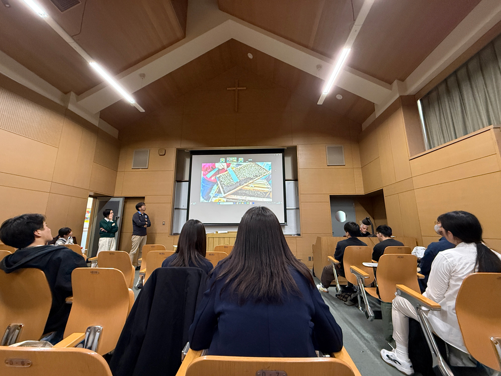 当日は、全国の高校による活動報告に加え、⼲場英弘先⽣による飼育技術講義が行われました。さらに、会場となった聖学院中学高等学校で飼育されているセイヨウミツバチの内検の見学や⼲場先⽣による内検解説も実施されました。