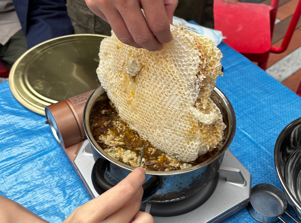今回は三崎祭(日大経済の文化祭)で、水道蜂プロジェクトはこの蜜蝋を使ったハンドクリーム作り体験を無料で行います。多くの皆様に体験していただくため、現在、蜜蝋の抽出作業を進めています。